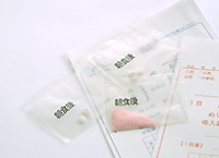 入院患者さんへの薬は、内服薬・外用薬・注射剤全て医師の処方を基に薬剤師が調剤を行っています。その際、用法・用量・日数等の確認や持参薬との相互作用・重複投与のチェック等も行い、処方に疑問や不明点がある場合は処方医に問い合わせて確認を行います。患者さんの年齢や希望に応じて一包化調剤を行っています。