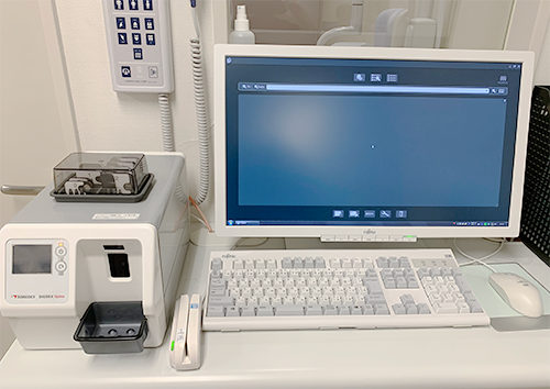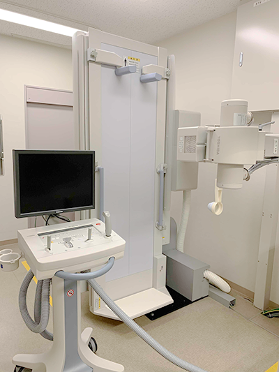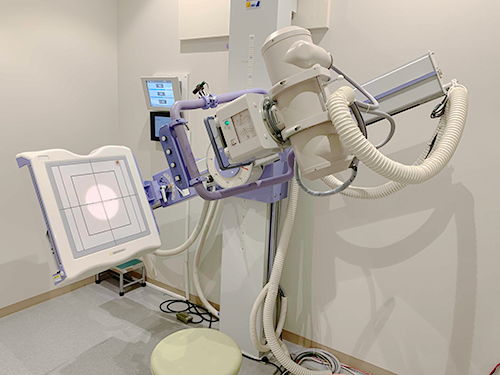 当院の一般撮影は、DR(Digital Radiography)システムを使用し、FPD(Flat Panel Detector:被写体を通過して照射されるX線エネルギーを検出し電気信号に変換するX線画像平面検出器) を用いて、耳鼻咽喉科領域の一般撮影や胸部などの撮影を行っています。DRはデジタル画像のため、濃度やコントラストの調整をはじめ様々な画像処理を加えることができ、少ないX線量での撮影が可能です。