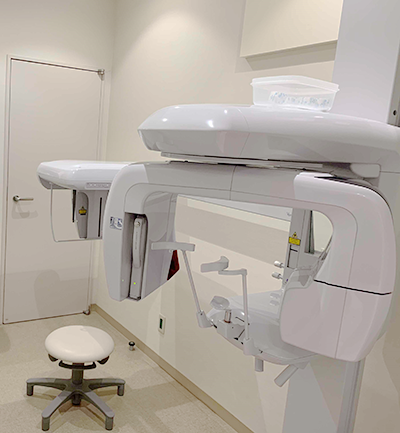 パノラマ撮影は、湾曲した顎骨を展開した画像で、親知らずの抜歯の際、下歯槽神経管の位置を知るため重要な撮影です。 また腫瘍病変では、位置や広がりを容易にとらえることができます。セファロX線撮影では、主に顎変形症等に用いられる撮影で、咬合位置(嚙み合わせ位置)や上顎骨と下顎骨の相互的位置関係等を評価します。