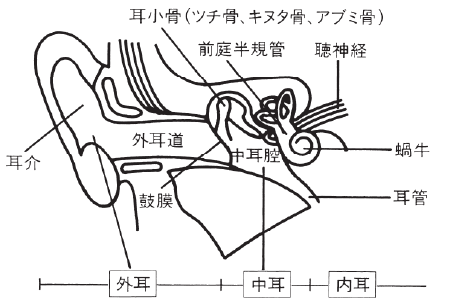 音は、外耳から入り中耳、内耳と伝えられます。