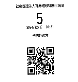 • 受付番号は受付順に発行されたものになります。予約患者様においては、受付番号とお呼び出し番号が前後いたします。