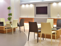 入院患者のみなさんが気軽にくつろぎ、お見舞いの方々とも談話できる「コミュニティー・スペース」です。療養生活での憩いの場としてご利用ください。