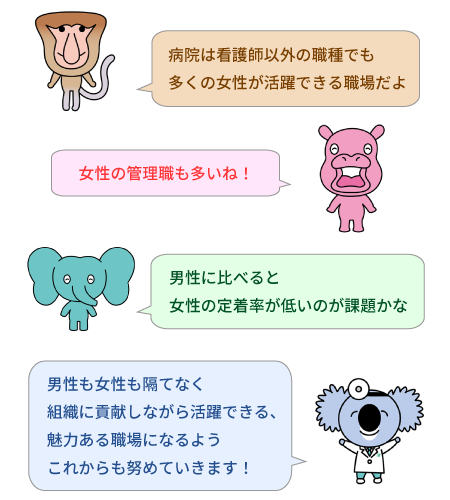 男女ともに全職員が充分に能力を発揮し、活躍できる環境を整備するために、次のように行動計画を策定します。